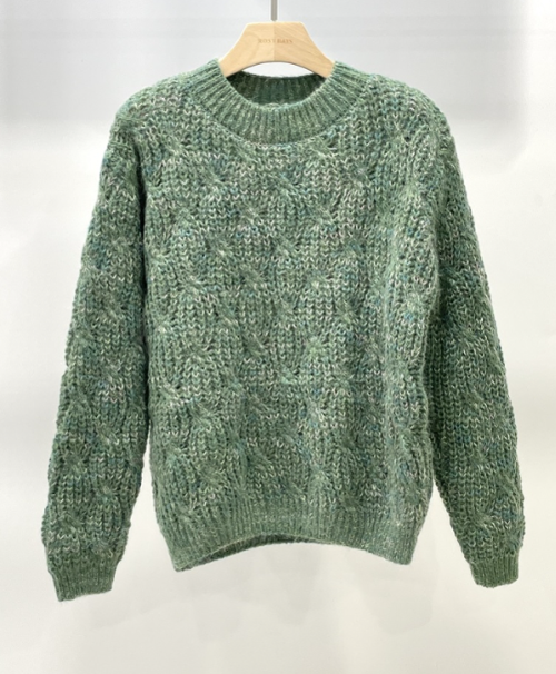 Tie-dye Olive Knit Printed Long Sleeves Sweater -